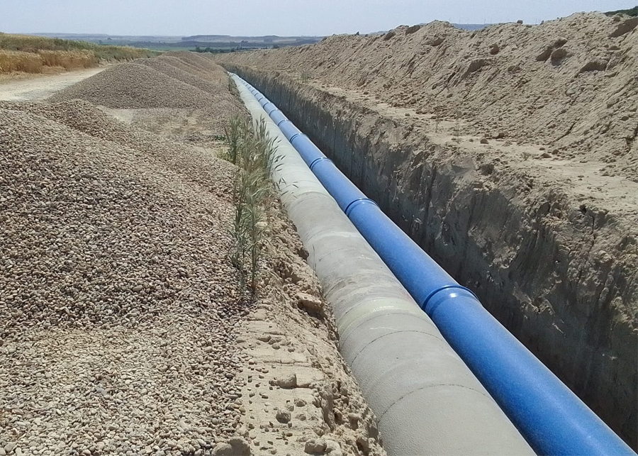 - Tuberías de conexión de las redes de tuberías a presión de los bombeos de Violada y Abariés con la red de tuberías a presión del bombeo de Colladas. Se proyectan en PVC-O-500 1,6 Mpa.